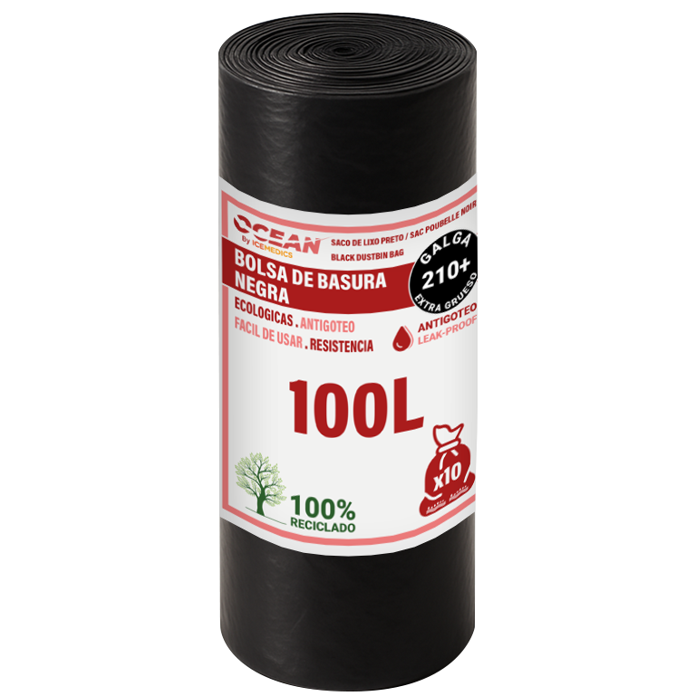 • Industrial garbage bags made from 100% recycled LDPE plastic (low-density polyethylene)