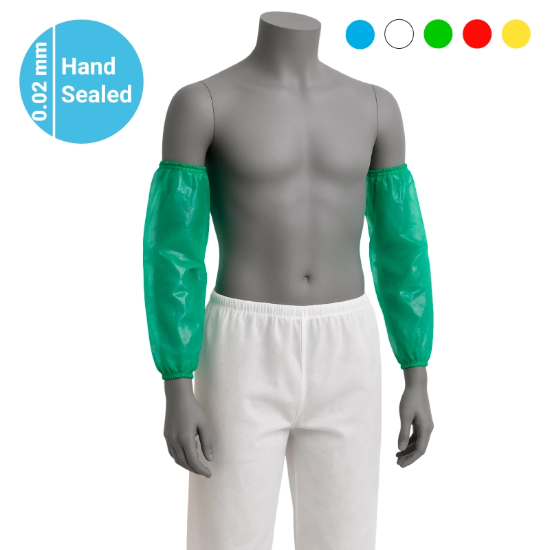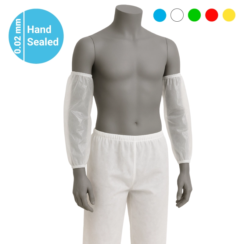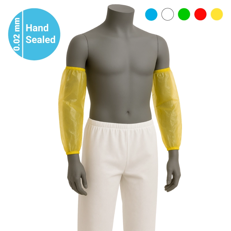 Polyethylene sleeve covers, 0.02 mm thickness, designed for minimal risks and single use. Equipped with elastic bands at both ends to ensure optimal comfort and secure adaptability during use.