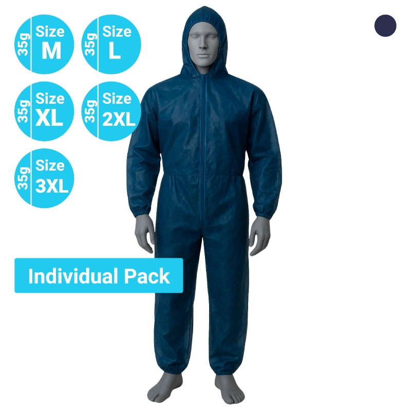 Polypropylene Coverall 35 g with Hood – Dark Blue