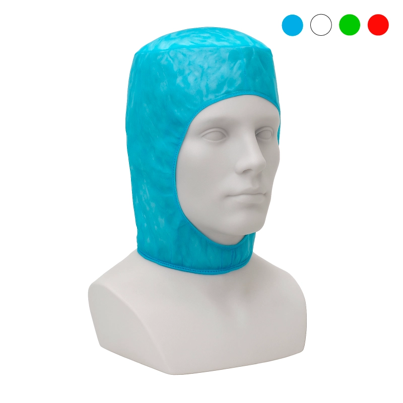 Full head cover made of polypropylene (non-woven) for minimal risks and single use. Adjustable with elastic at the neck to ensure complete head and neck protection.
