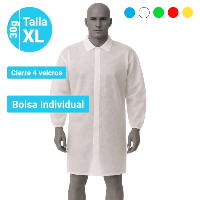 Bata de Polipropileno 30g, Cierre Velcro 4 Velcros – Talla XL