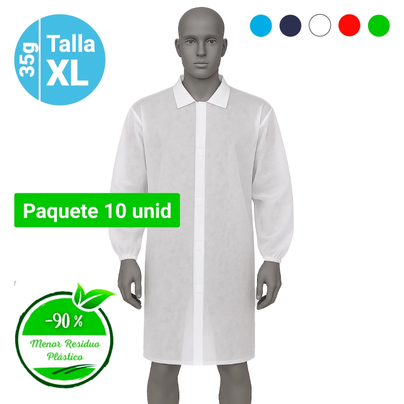 Bata de Polipropileno 35grs – Talla XL – Paq 10 unid