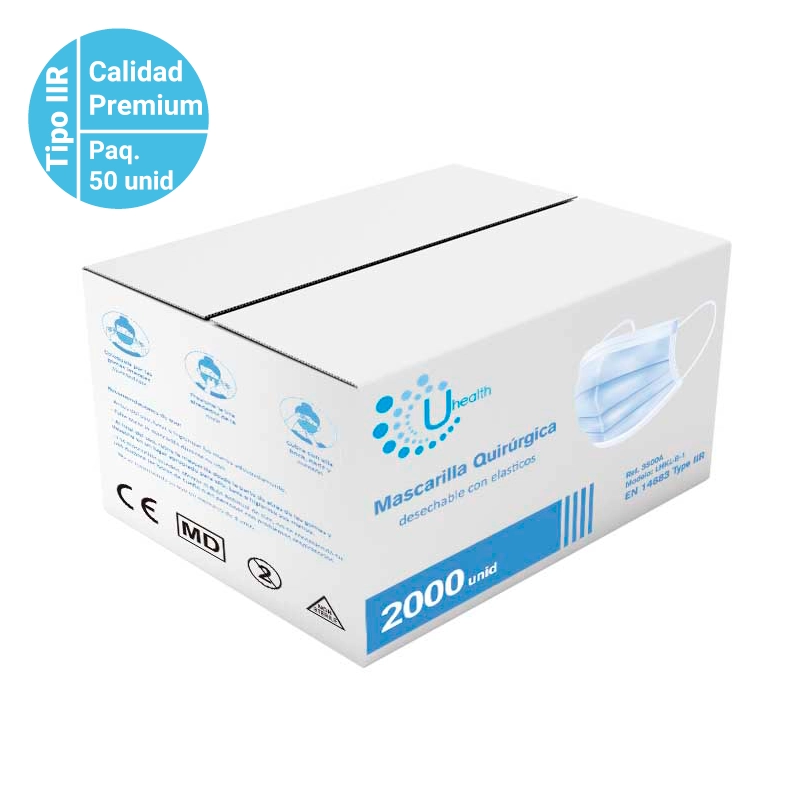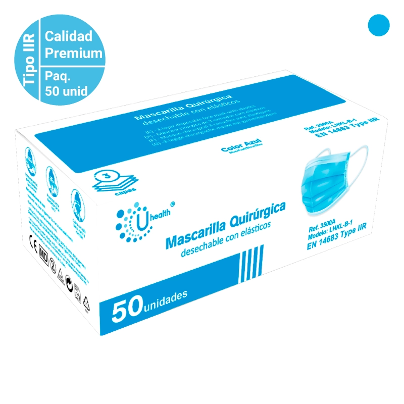 Mascarilla Quirúrgica Premium Uhealth Tipo IIR – Con Gomas