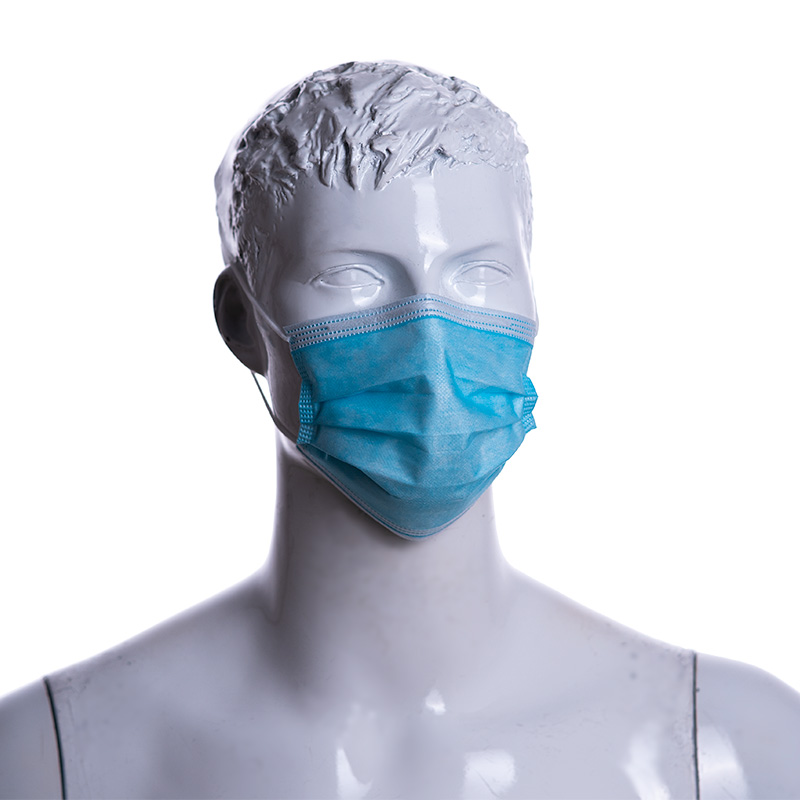 Mascarilla Quirúrgica de máxima protección y filtración Tipo IIR , fabricada en tres capas de tela no tejida y tejido filtrante, con tira nasal moldeable en acero plastificado y dos gomas de ajuste suaves.